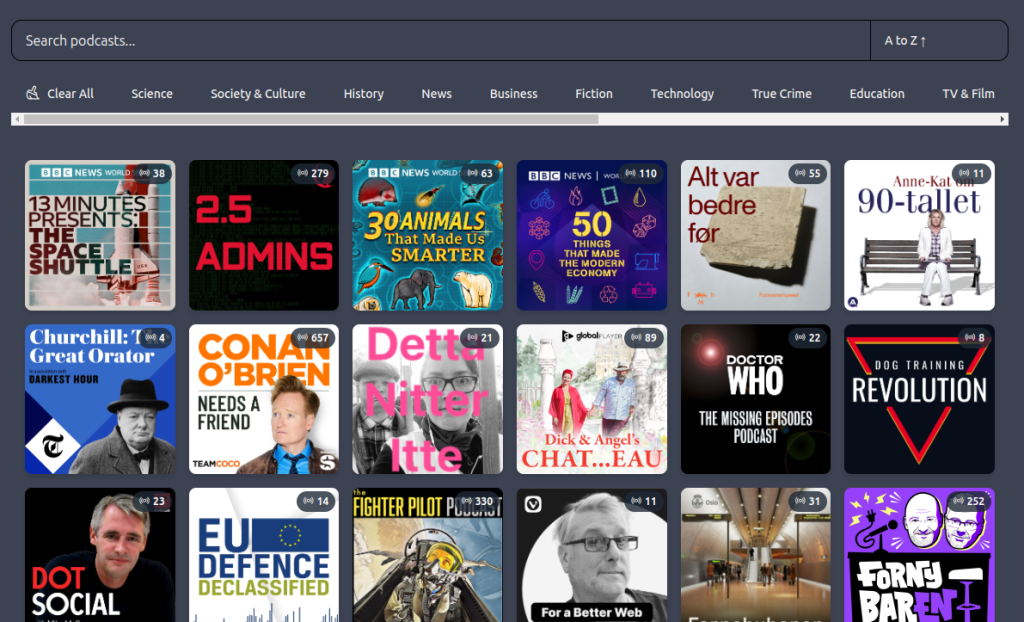 PinePods was installed late in the year. It is a Rust based project that offers a gPodder compatible backend and a web front end. It can also sync to an external gPodder backend if you already use something like oPodSync. It also offers desktop and mobile apps, but I will mainly use the web front end and AntennaPod on Android.